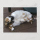 Calico cat curled up on the decking postcard