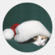 Calico cat with her face sticking out of a Santa Claus hat photo Christmas sticker