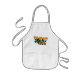 This apron is made with a durable fabric! My grandson LOVES it! The shape provides great coverage to protect clothes from paint spatters, etc. The print quality is excellent! The detailed lines of the dragon drawings are printed in a crisp, clean manner.