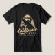 This T-shirt features a vibrant, vintage-inspired design on a deep navy background, capturing the essence of California beach culture. The centerpiece showcases a stylized surfer silhouette within an arching wave, accented with bold orange and beige tones, and a subtle "Surf Club" banner. The word "California" sweeps across the middle in elegant, weathered script, with "Los Angeles" and "Surfing Beach Paradise" framing the design in a distressed font. Speckled texture and a retro colour palette give it a worn, nostalgic feel, perfect for surf enthusiasts or anyone craving a coastal vibe.