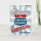 This vintage California road trip design features the Lincoln Highway sign with An American Adventure at the bottom. In retro red white and blue.