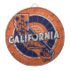 Hit the bullseye with this California-inspired dartboard, featuring a vintage travel poster style that brings the golden state to life. With a colour palette of ornage, white, and blue, this design showcases iconic California details like a surfer, palm trees, and the Golden Gate bridge, capturing the charm of the state. Perfect for a man cave or game room, this dartboard can be personalized with custom text, including a name and established date, making it a unique addition to any space. Whether it’s a gift for him or any dart lover with a west coast spirit, this personalized custom dart board promises hours of fun with a touch of state pride.