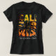 California, The Golden State black T-Shirt for women with palm trees and sunset scene letter fill. This T-Shirt design features the Cali-for-nia letters that come with the California state flag colours.