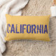 Graphic text spells out California on this dramatic pillow.