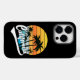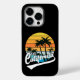 California iPhone case with a retro design that features a sunset and palm trees on black background (customizable bg). This design also has California in a handwritten font with a swash tail glyph for that stylish retro look. This iPhone case is just for you if you are from California or you can get as a gift or souvenir for someone.