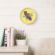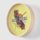Stylish wall clock features a retro style California state silhouette on a sunny yellow background.