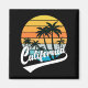 California magnet with a retro design that features a sunset and palm trees on black background (customizable bg colour). This design also features California in a handwritten font with a swash tail glyph for that stylish retro look. This fridge magnet is just for you if you are from California or you can get as a gift or souvenir for someone.