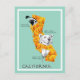 Hand-drawn images of the California state bird, animal and flower along with the state outline filled in with the state flower.