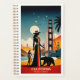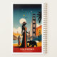 California: A Starry Adventure Awaits, Under a starlit sky, two adventurous women stand proudly by the Golden Gate Bridge, accompanied by a spirited bear. Framed by swaying palm trees and majestic mountains, this enchanting scene captures the essence of California—a land where dreams and adventures come to life planner!