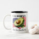 Keep it fresh and West Coast proud with this playful California Two-Tone Mug featuring "California" across the top, set against a waving United States flag. In the forefront, a perfectly cut avocado—seed and all—pays tasty tribute to the Golden State’s most famous green gem. It’s a sunny slice of California culture, blending laid-back vibes, healthy living, and a little foodie flair. Perfect for avocado lovers, brunch enthusiasts, and anyone who believes life’s better with a little guac on the side. Customizable for your city, zip code, neighborhood, or even your name! Design can be moved or duplicated to the opposite side. Popular shows and movies dedicated to California include Fast Times at Ridgemont High, Entourage, Point Break, The O.C., Beverly Hills 90210 and Gidget.