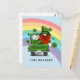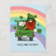 Call Me Lucky Irish Gnome St Patrick's Day product. Funny bearded gnome, travelling in a truck, heading towards a rainbow, and shamrocks in the air. Personalize this template
