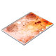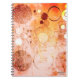 A notebook with a bright and busy design of spheres in oranges, pinks and yellows.
