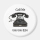 Two lines of customizable text are featured on this old-fashion style telephone button magnet.