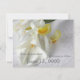 Pretty white calla lilies and iris with touches of yellow on a decorative white fabric