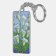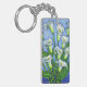 Un tableau coloré stylisé de beaux lys Calla blancs fait dans une belle palette de couleurs bleu, vert et blanc sur un porte - clé par Lisa Lorenz