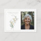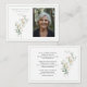 An elegant memorial photo funeral memorial prayer cards featuring white calla lilies and sage green eucalyptus leaves. You can customize with your chosen prayer, psalm or poem. The serene, natural aesthetic of eucalyptus leaves provides a calm and beautiful theme for funeral services. The white calla lilies represent beauty and innocence, while eucalyptus conveys healing, strength, and purification, making this combination popular for sympathy to offer peace.