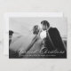 design noir et blanc avec une photo de la mariée et mariée et calligraphie élégante. Le texte et les couleurs peuvent être personnalisés.