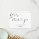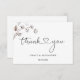 Carte de remerciements agrémenté d'un bouquet de fleurs de coton et de cône de pin. Le texte "merci" est écrit dans le coeur connectant la police.