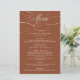 Un thème de dessert en terre cuite intemporelle et un menu de mariage élégant avec un script de calligraphie raffiné sur un arrière - plan classique, parfait pour une célébration mariage formelle et sophistiquée. Pour la personnalisation ou des produits supplémentaires avec ce design, n'hésitez pas à me contacter.