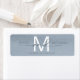 Une police de signature manuscrite combinée à une sans serif moderne est utilisée dans cette collection de papeterie florale pour donner un ton chaleureux et intime à votre mariage. L'étiquette d'adresse de retour indiquée ici contient votre monogramme, vos noms et votre adresse sur un simple arrière - plan d'aquarelle bleu poussiéreux. Recherchez ID771 pour voir d'autres pièces et choix de couleurs pour cet ensemble.