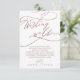 Cette calligraphie dorée rose romantique qui souhaite bonne carte est parfaite pour un mariage simple. Le design classique moderne comprend des tourbillons fantaisistes et des fleurs fantaisistes avec une magnifique typographie de feuille d'or en faux rose. Personnalisez cette carte d'invitation avec vos noms, et un court poème de bienvenue. Remarque : Ce design ne présente pas de véritable feuille d'or rose. C'est un graphisme de haute qualité fait pour ressembler à du papier doré rose.