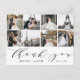 Cette élégante carte postale de remerciement comporte 8 photos avec "merci" en script de calligraphie, ainsi que des noms de couple et la date mariage. L'arrière de cette carte postale offre beaucoup de place pour écrire une note de remerciement personnelle et sincère, ainsi que des lignes pour l'adresse postale.