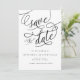 Cette élégante invitation combine un rendu orné de script de Save the Date avec une police de style traditionnel. Facile à personnaliser avec vos détails mariages et ajouter une photo douce du couple heureux sur le dos. Belle !