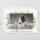 Modern Elegant Calligraphy Script Merry Christmas Watercolor Holiday Pine Greenery Wedding Photo Card
