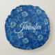 Calligraphy Elegant Blue Floral Custom Name Round Pillow