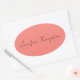 Calligraphy Elegant Coral Pink Plain Simple Name Oval Sticker