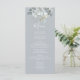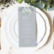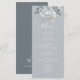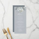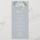 A simple minimalist wedding reception menu card template. with elegant, calligraphy script blue, greenery and floral design, perfect for reception decor, with a dusty blue theme