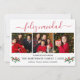 Modern Calligraphy Script 3 Photo Family Photo Collage Feliz Navidad Merry Christmas Card includes Watercolor Christmas Holly Berries - Red Script