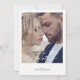 A handwritten, signature font combined with a modern sans serif is used in this floral stationery collection to set a warm and intimate tone for your wedding. The Save the Date card shown here features your own image and delicate heart accent on the front while the back has lush flowers and foliage in shades from dusty blue to soft pink blush against a background of dreamy watercolor paint splashes. Search ID771 to see other pieces and color choices for this set.