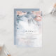 A handwritten, signature font combined with a modern sans serif is used in this floral stationery collection to set a warm and intimate tone for your wedding. The wedding dinner menu shown here features lush flowers and foliage in shades from dusty blue to soft pink blush against a background of dreamy watercolor paint splashes. Add your names, wedding date and menu selections using the provided template. Search ID771 to see other pieces and colour choices for this set.