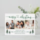 Calligraphy Heart 3 Photo Christmas Pines Gold Foil Holiday Card