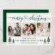 Modern Calligraphy Gold Foil Script 3 Photo Family Photo Collage Merry Christmas Card includes Watercolor Pine Trees - Your Photos in Gold Foil Frames with a Forest Green Back