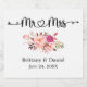 Calligraphy Heart Floral Mr. and Mrs. Wedding Sparkling Wine Label