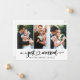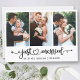 Modern Minimalist Simple Calligraphy Heart Script Just Married 3 Photo Wedding Announcement Card