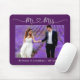 Modern Minimalist Simple Calligraphy Script Mr. and Mrs. Heart Wedding Bride and Groom Photo Mouse Pad - Purple