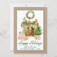 Modern Elegant Calligraphy Ink Script Watercolor Tree Kraft Happy Holidays Card - Green Script