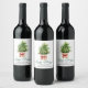 Modern Elegant Calligraphy Ink Script Happy Holidays Wine Label includes a Watercolor Pine Tree in a paper bag with a Red Ribbon Bow, Gold and Red Christmas Ornaments.