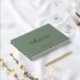 This personalized elegant wedding guest book in dark sage green - features the couple's new last name front and centre on the cover in beautiful calligraphy foil text. All text elements, including custom text on the spine, can be customized. Need to change the colour of this wedding guest book? Use the design tool to change the background colour to any colour you want.