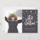 Send holiday greetings to family and friends with this customizable Christmas flat card featuring the text 'Let it Snow' in beautiful calligraphy, surrounded by falling snow on a black background. Personalize by adding your favourite photo and texts.