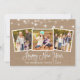 Modern Fun Calligraphy Script Kraft 3 Photo Family Happy New Year Card with String Lights