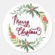 Calligraphy Merry Christmas botanical wreath Clas Classic Round Sticker
