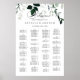 This calligraphy minimalist alphabetical seating chart is perfect for a modern wedding. The design features watercolor hand-drawn elegant botanical green branches and leaves.