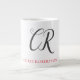 Calligraphy Monogram Name Black Grey Custom Gift Large Coffee Mug