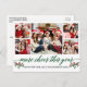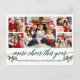 Modern Calligraphy Script 5 Photo Family Photo Collage More Cheer This Year Holiday Postcard includes Watercolor Holly Berries - Green Script
