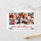 Modern Calligraphy Script 5 Photo Family Photo Collage More Cheer This Year Holiday Postcard includes Watercolor Holly Berries - Red Script