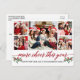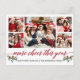 Calligraphy More Cheer This Year 5 Photo Red Postcard